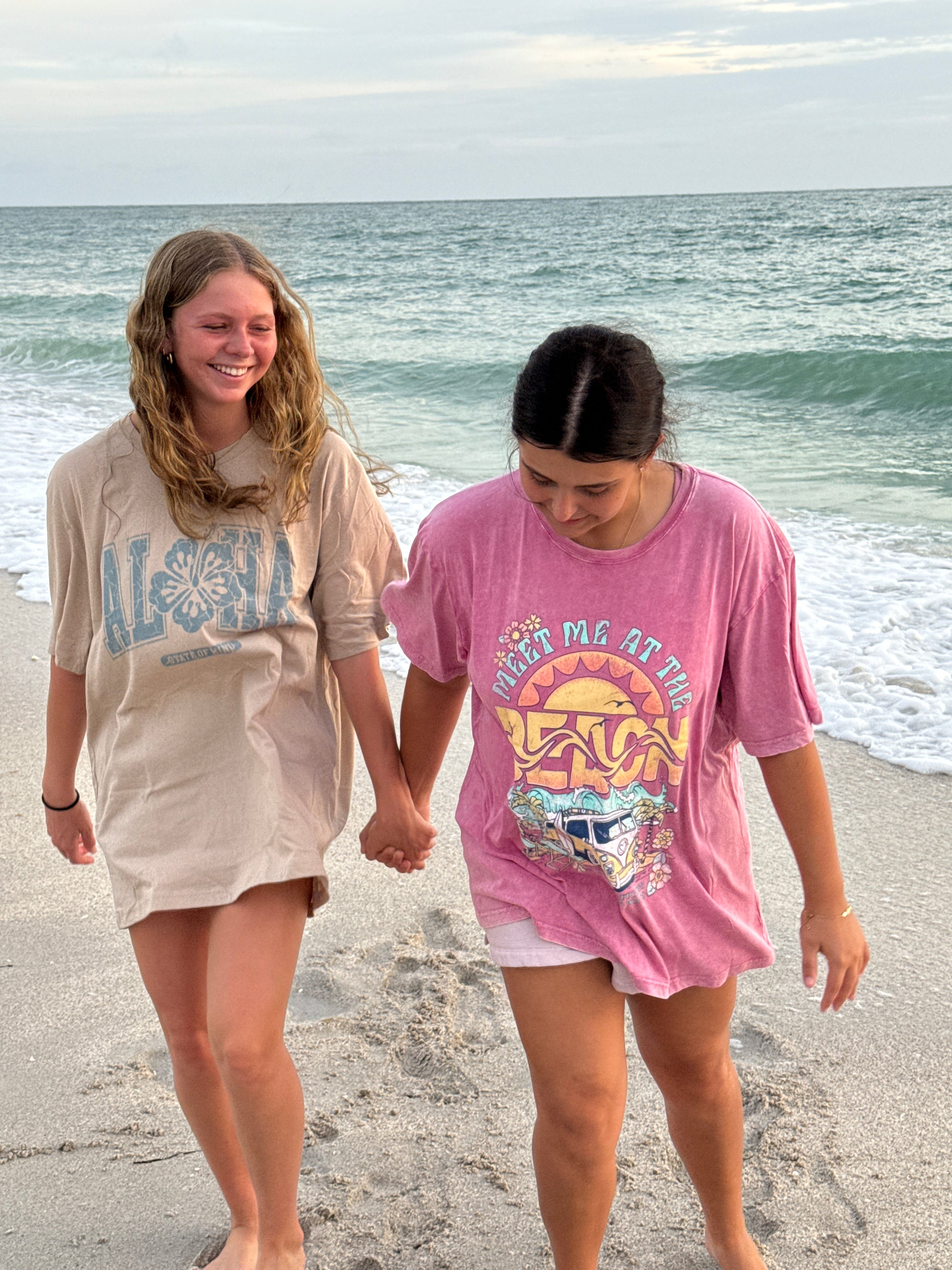 Cute vintage and mineral washed boyfriend oversized fit tee. Meet me at the beach sounds like fun. Kill your wanderlust again soak up the sun in our meet me at the beach to this laid-back T pops with retro flare, featuring a groovy, yellow, sir, van. Thompson and son drenched lettering that reads happiness comes in waves with a soft wash, plumb fabric and relax fit it's made for long drives beach, hanks, and wherever the tide takes you.